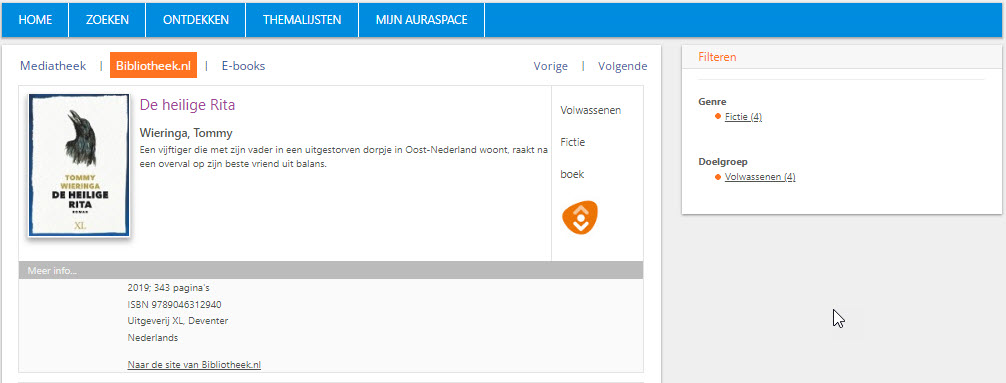 Deze koppeling bieden wij uw school kosteloos aan. U hoeft alleen aan ons door te geven met welke bibliotheekcatalogus u een koppeling wenst, en wij regelen dit dan voor u. Wanneer de leerlingen lid zijn van de bibliotheek, kunnen zij vanuit het zoekresultaat in Aura doorschakelen naar de reserveringspagina van de bibliotheek en het boek reserveren of het e-book downloaden.