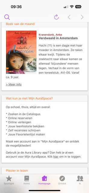 De informatietegels op de Aura Online homepage kun je in de app vinden door op homepage (huisje) te drukken.