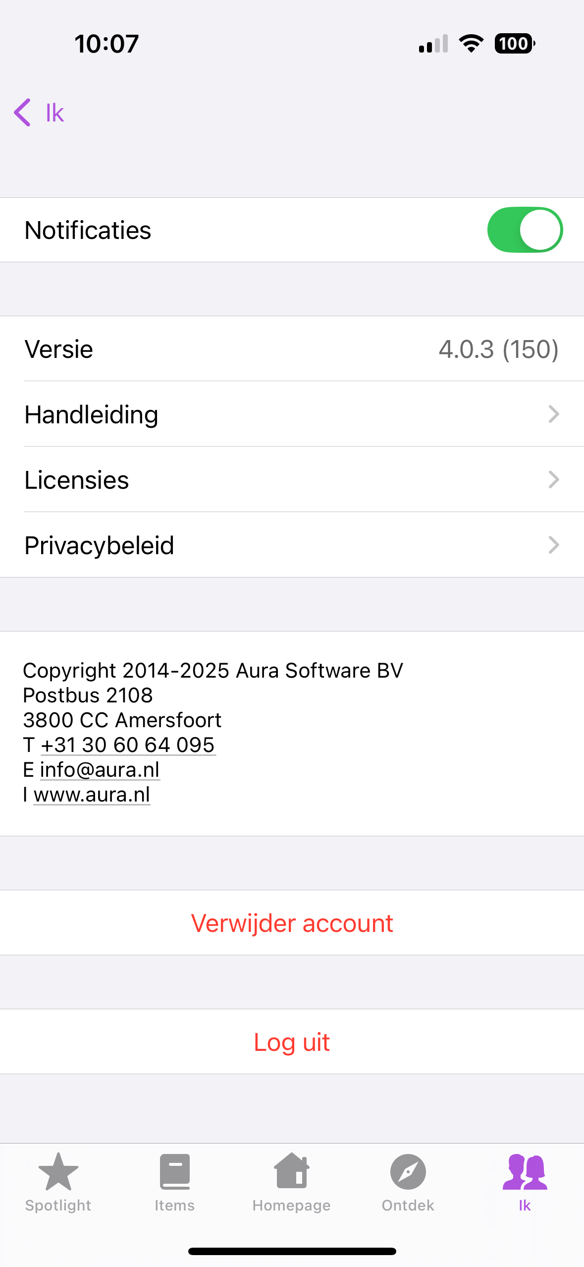 4 Handleiding voor iOS (iPhone en iPad) Instellingen In dit scherm kun je uitloggen. En eventueel je pushberichten uit of aanzetten. Let op: Je mist dan wel belangrijke berichten als je dit uitzet. Ook kun je hier de privacy voorwaarden raadplegen of je account verwijderen.